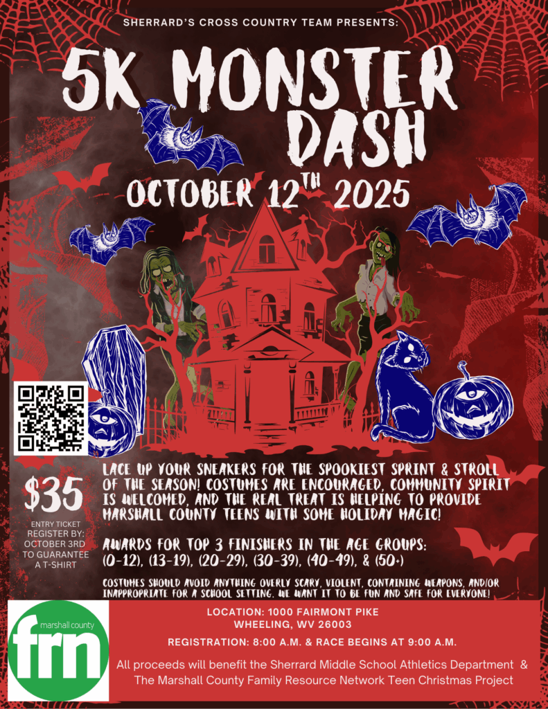 Sherrard’s Cross Country Team is hosting a 5K Monster Dash on October 12th. Registration is at 8AM and the race begins at 9AM. Costumes are encouraged! All proceeds benefit the Sherrard Middle School Athletics Department and the FRN Teen Christmas Project.